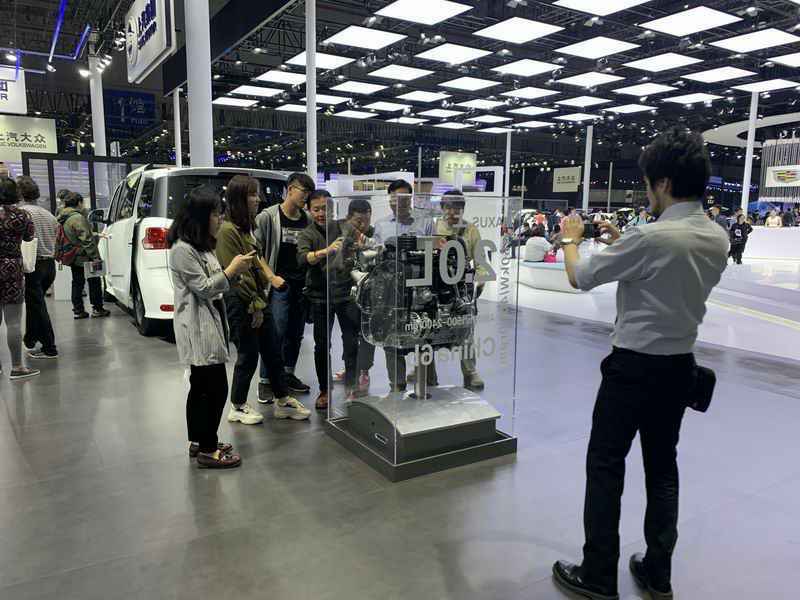 2019年上海车展上汽大通动态发动机展品获得参观者的青睐